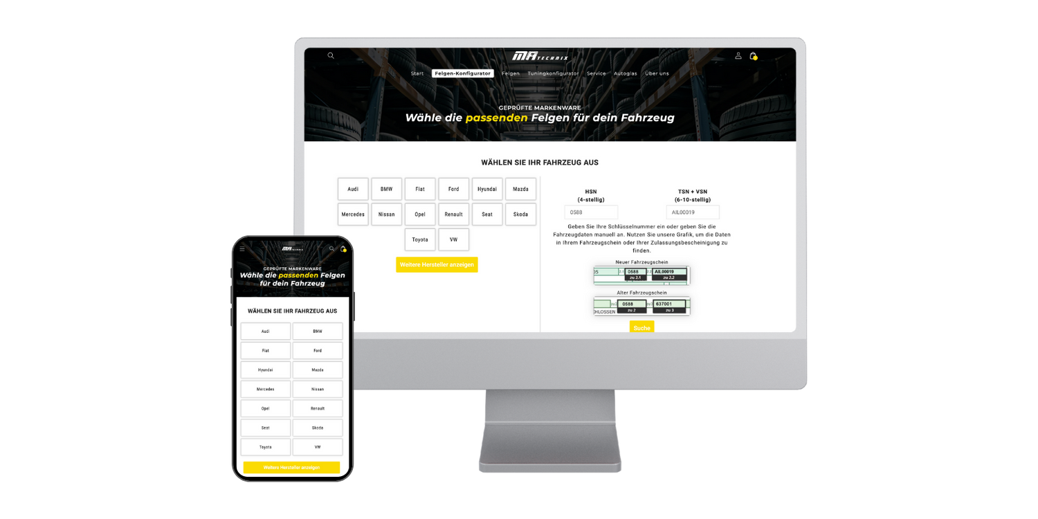 Du wählst dein Fahrzeug im Konfigurator aus, und wir prüfen zusätzlich vor dem Versand die technische Kompatibilität (Größe, ET, Traglast, Lochkreis). So schließen wir Fehlbestellungen und Passprobleme zuverlässig aus.
