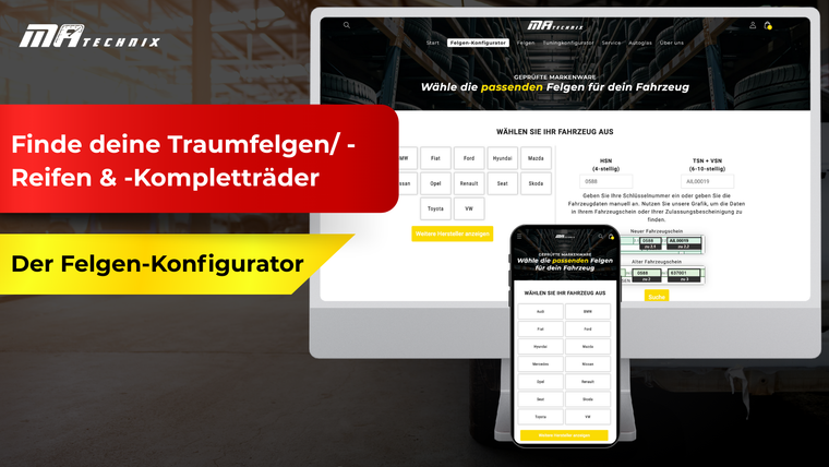 Ich habe zum ersten Mal über MA-Technix bestellt und der Felgen- & Reifen-Konfigurator war eine echte Erleichterung. Größe, Design und Reifentyp wurden perfekt angezeigt – bestellt, geliefert, montiert. Alles hat auf Anhieb gepasst.